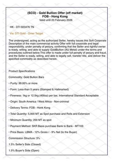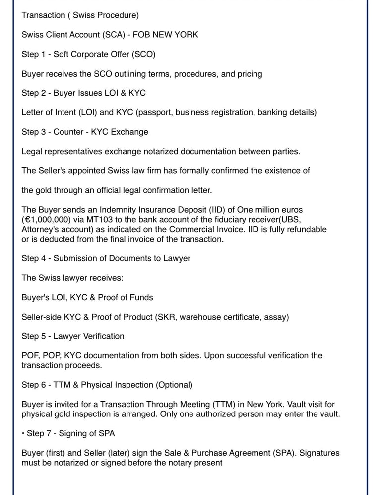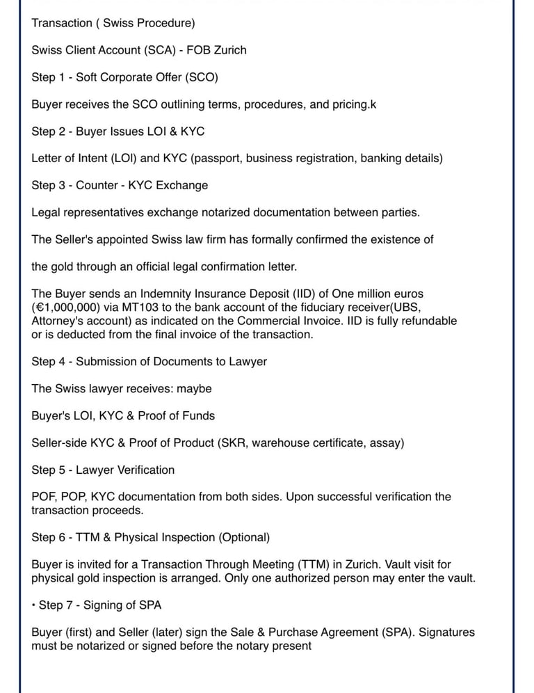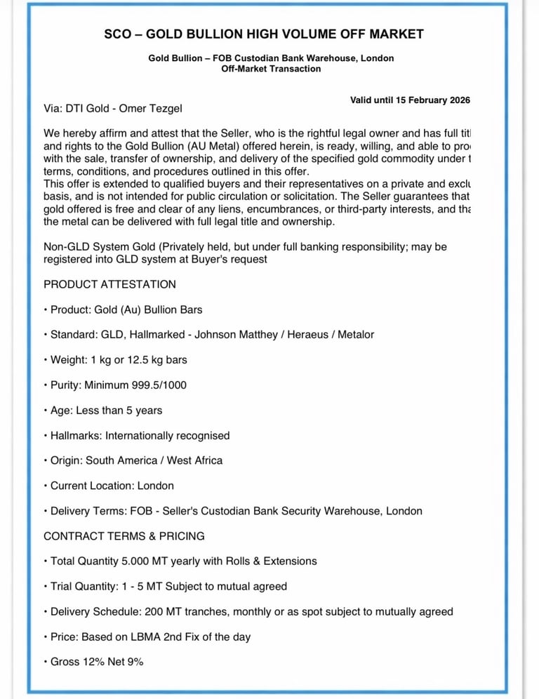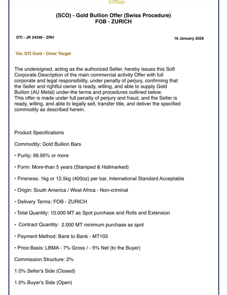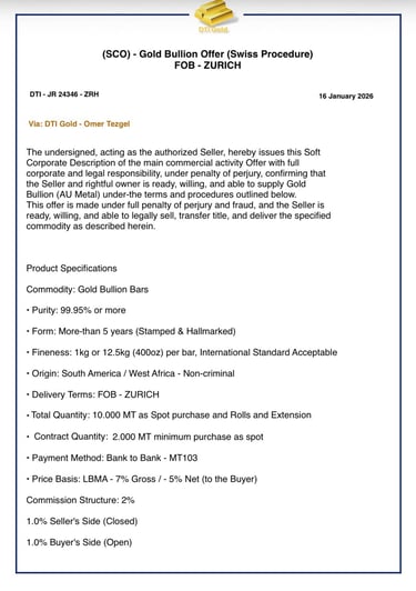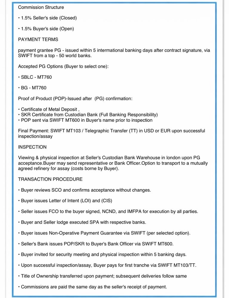 We offer a seamless, secure, and profitable gold trading experience. By partnering with trusted sellers and operating under CIF or FOB procedures, we ensure authenticity, security, and complete peace of mind. Attractive discounts are provided to buyers, delivering exceptional market value. All transactions are managed through secure logistics, with contract terms tailored to your specific requirements. Our fast and efficient execution process guarantees timely deliveries. When you work with us, you gain a reliable, transparent, and highly professional partner committed to your long-term success.